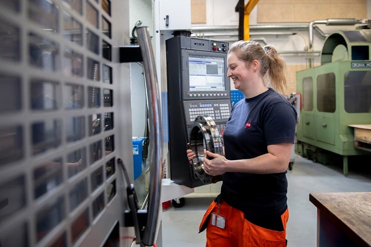 Annelie Hersley er én af de tre lærlinge, der om få dage flyver mod Texas. Hun skal på et eksklusivt praktikforløb på Lockheed Martin-fabrikken, der blandt andet producerer F35 kampfly. | Foto: Simon Fals, Dansk Metal