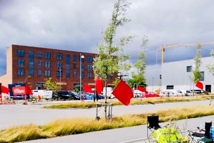 3F hejser tirsdag de røde faner ved milliardbyggeri i Hedehusene (Privat). | Foto: Christian Sørensen