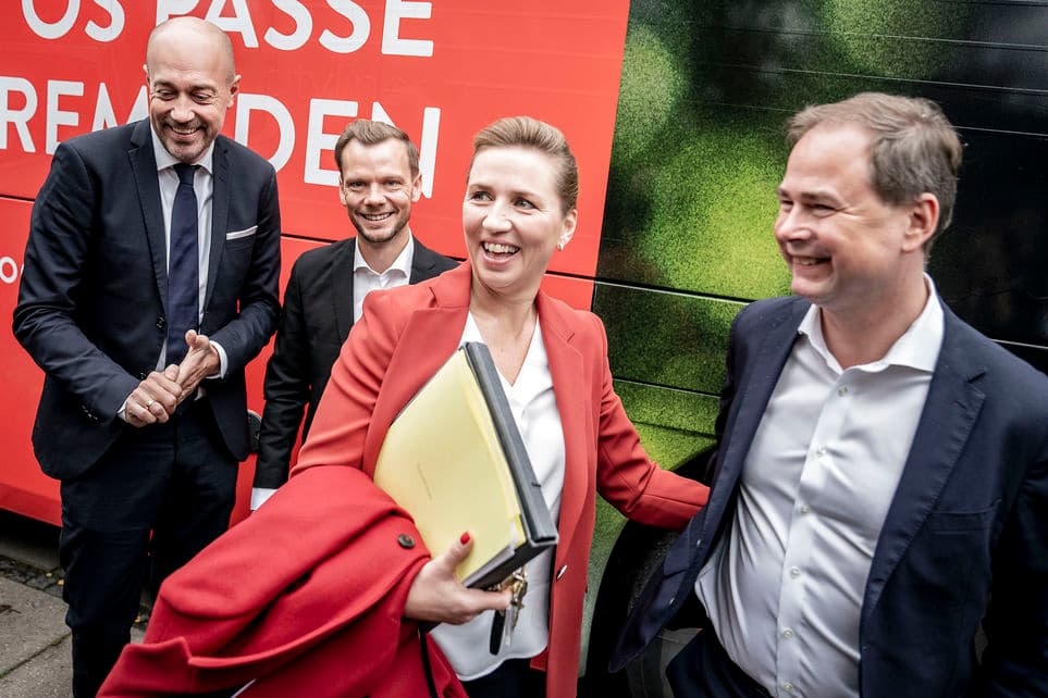 Sundhedsministeren, beskæftigelsesministeren, statsministeren og finansministeren på vej til onsdagens pressemøde, hvor de præsenterede regeringens syv principper for bedre løn og arbejdsvilkår. | Foto: Mads Claus Rasmussen/Ritzau Scanpix