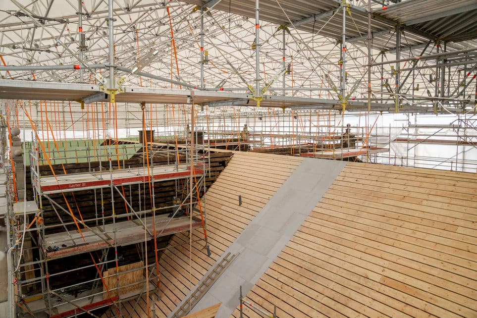 Tilsynssagerne fra Arbejdstilsynet viste blandt andet, at håndværkerne arbejdede på tagfladen tæt på kip uden at være sikret af skærm, net eller lignende. Mens en anden tilsynssag viste, at nedrivning af tagbrædder foregik uden handsker, overtræksdragt og åndedrætsværn. | Foto: Ida Marie Odgaard/Ritzau Scanpix