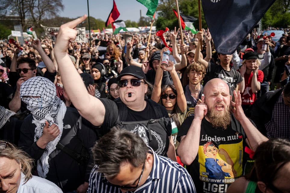 Men indslagene og talerne fra hovedscenen i Fælledparken blev forsøgt overdøvet af en række pro-palæstinensiske demonstrater.
