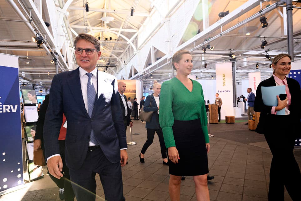 Direktør for Dansk Erhverv, Brian Mikkelsen, sammen med statsminister Mette Frederiksen (S) ved Dansk Erhvervs årsmøde i 2022. | Foto: Philip Davali/Ritzau Scanpix