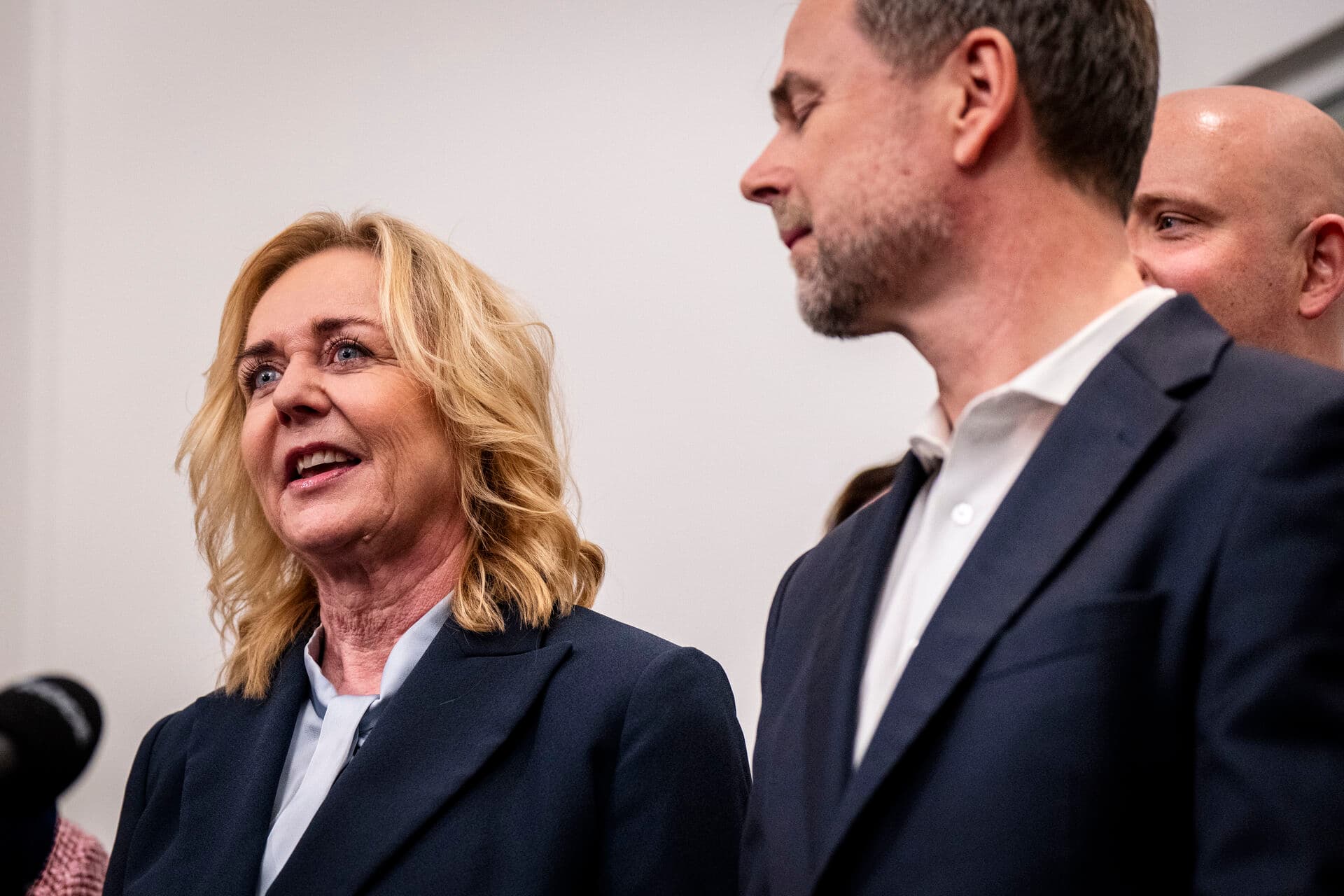 Mona Juul, formand for De Konservative, var med til at præsentere finansloven for 2026 på et pressemøde i Finansministeriet torsdag. | Foto: Sebastian Elias Uth/Ritzau Scanpix