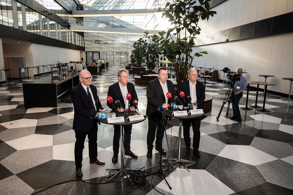 Topforhandlerne præsenterede søndag en nye overenskomst på industriområdet. | Foto: Emil Helms/Ritzau Scanpix