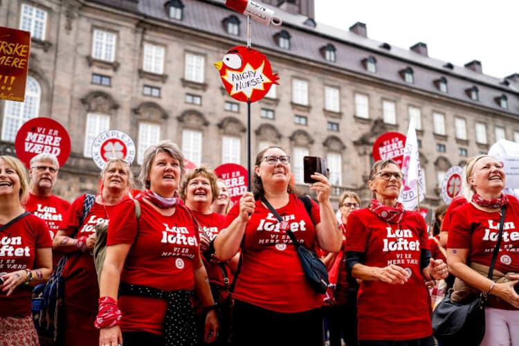 Baggrunden for lønstrukturkomitéen er sygeplejerskernes nej til forslaget om en ny overenskomst. De frustrerede sygeplejersker er utilfredse med deres løn, og en ti uger lang strejke sluttede i august, da Folketinget vedtog et indgreb og besluttede at nedsætte komitéen. (Arkivfoto) | Foto: Anthon Unger/Ritzau Scanpix