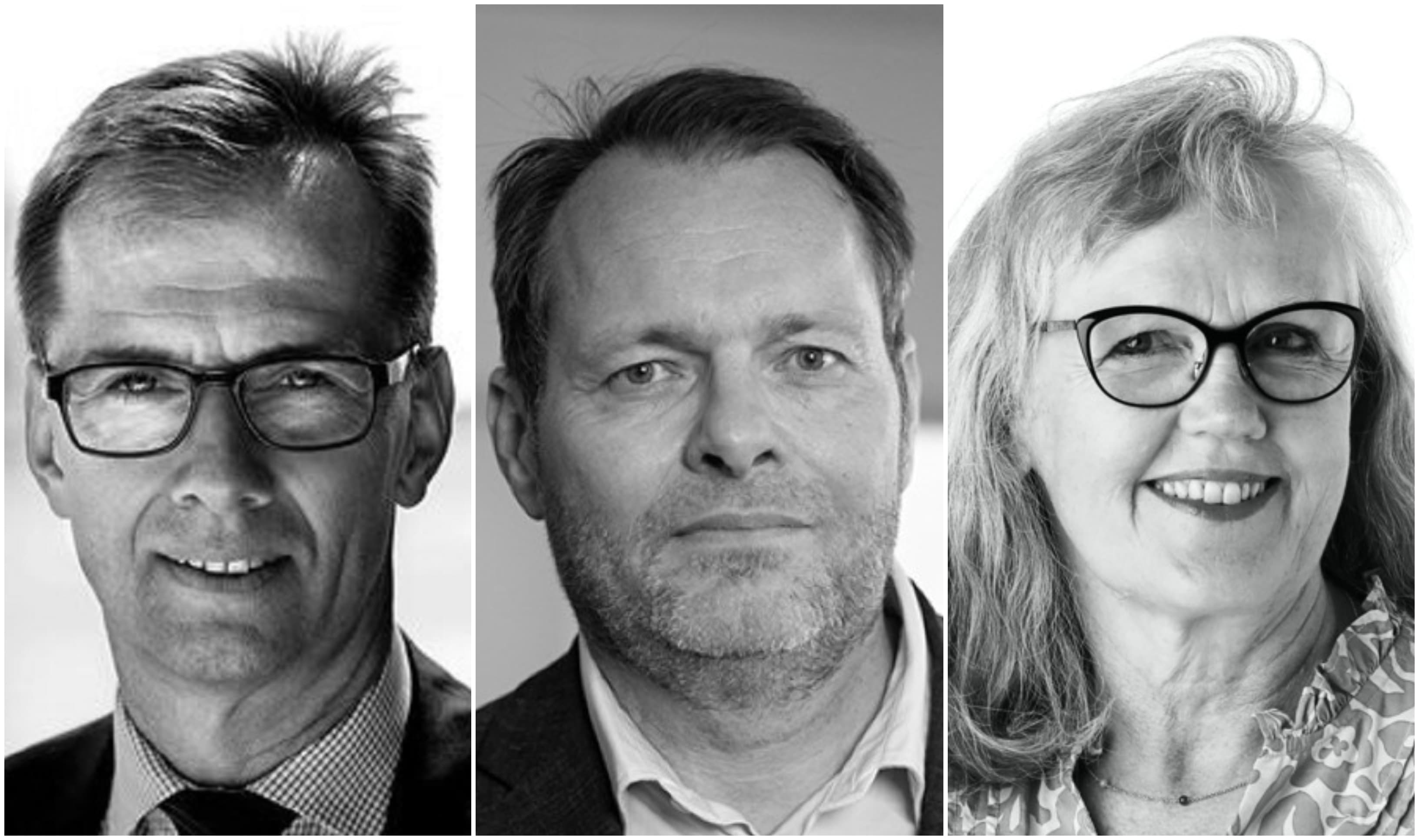 Fra venstre: Jens Klarskov (fhv. direktør i Dansk Erhverv), Simon Pihl (Ledelsesrådgiver i Blik- og Rørarbejderforbundet) og Gitter Redder (faglige kommentator A4 Medier). Tre medlemmer af panelet bag magtlisten.