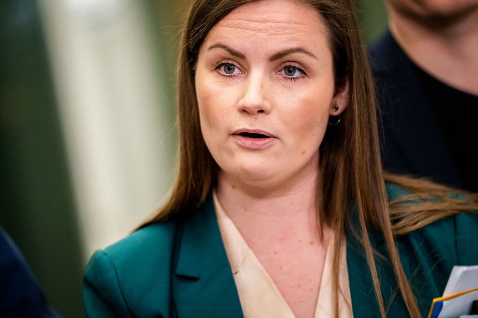 Mai Villadsen (EL) og flere andre oppositionspolitikere tordner mod regeringen for ikke at kunne svare på centralt spørgsmål i sagen om store bededag inden høringsfristens udløb. | Foto: Ida Marie Odgaard/Ritzau Scanpix