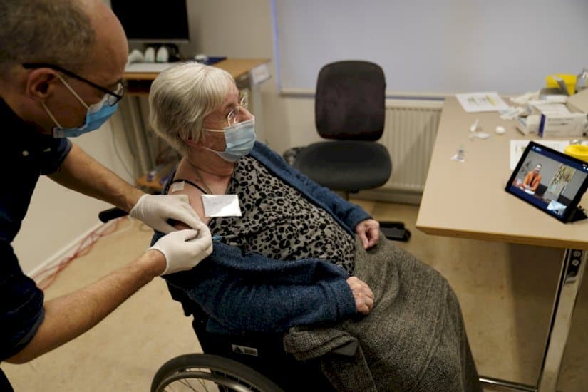 Den er blevet fordelt til et plejehjem i hver af landets fem regioner, og søndag er de første længe ventede stik altså blevet givet.