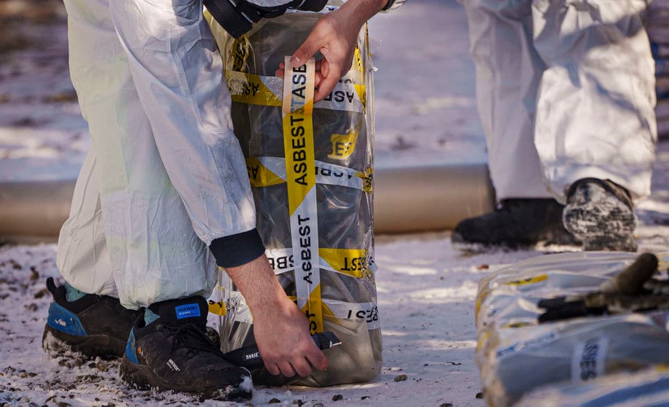 Arkivbillede af et asbestholdigt tag, der tages ned ved en ejendom i Virum. | Foto: Liselotte Sabroe/Ritzau Scanpix