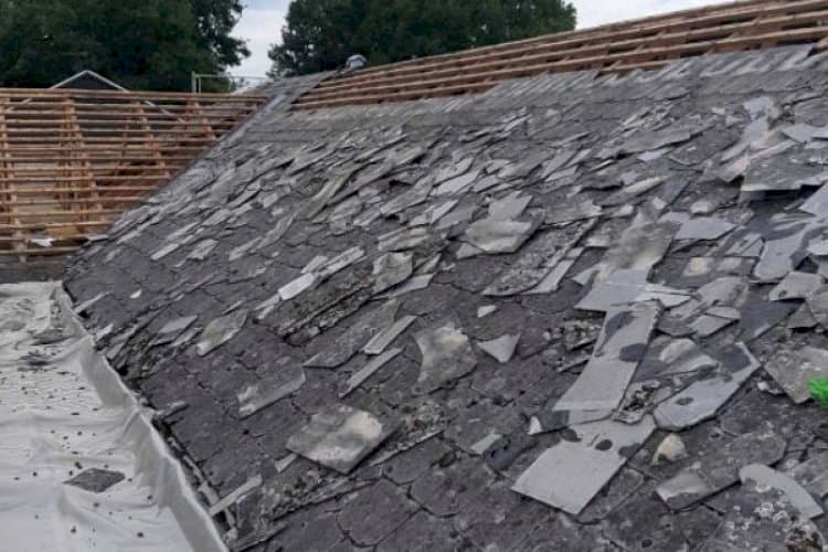 Håndværkerne arbejdede i asbeststøv uden værnemidler. På billedet ses knækkede eternitskifferplader.