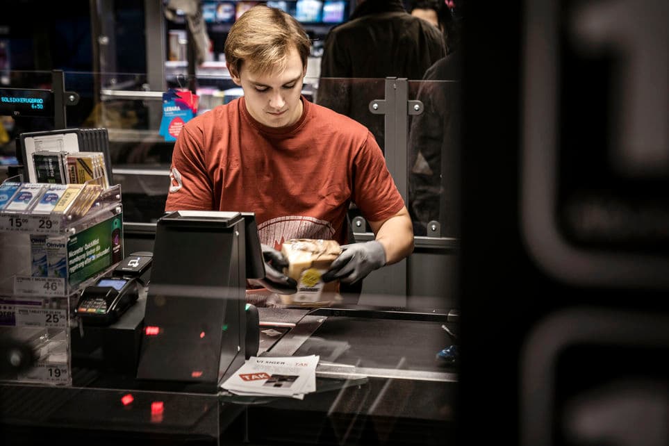 Arkivbillede af en kassemedarbejder i et supermarked. Som en del af regeringens udspil til at få flere i fritidsjob, mener de, at unge ned til 13 år bør kunne sidde bag kassen. | Foto: Thomas Lekfeldt/Ritzau Scanpix