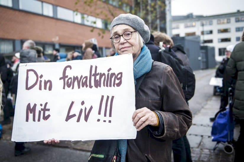 En demonstrant, der demonstrerer for en bedre sagsbehandling foran et jobcenter. | Foto: Anne Bæk/Ritzau Scanpix