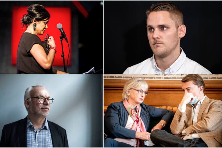 Forkvinden i organisationen Liva, Flora Ghosh (øverst tv.), Veganerpartiets Henrik Vindfeldt (øverst th.) og Pia Kjærsgaard er alle blevet beskyldt for at bidrage til et dårligt arbejdsmiljø. Københavns Stift og biskop Peter Skov-Jakobsen (nederst tv.) har også været ramt af negative sager i pressen. | Foto: Collage/Christian Liliendahl/Emil Helms/Maria Albrechtsen/Mads Claus Rasmussen/Ritzau Scanpix