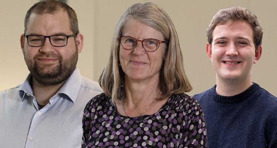 Kemiingeniør Martin Søgaard Poulsen, laborant Michael Næser Christensen og ph.d. Eva Spliid er netop blevet ansat i Dansk Kemidatabase hos Joblife. | Foto: Joblife
