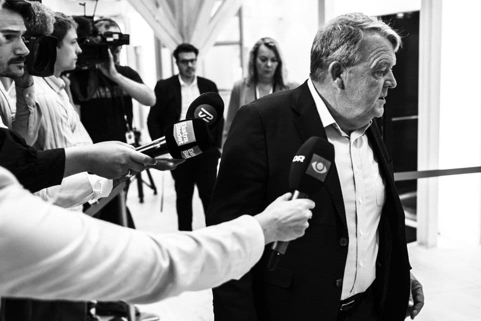 Moderaternes formand, Lars Løkke Rasmussen, på vej ud fra partiets krisemøde. | Foto: Thomas Traasdahl/Ritzau Scanpix