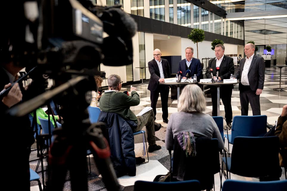 Søndag den 9. februar præsenterede de fire topforhandlere for henholdsvis Dansk Industri og CO-Industri den nye tre-årige overenskomst. | Foto: Nils Meilvang/Ritzau Scanpix