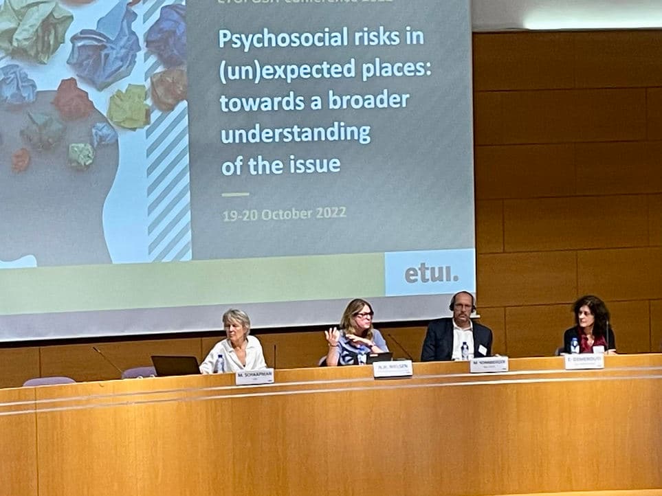 "Det er regler om beskyttelse mod belastninger i det psykiske arbejdsmiljø og derved fokus på årsagerne til stress og stressrelaterede lidelser, vi mangler. Om det handler om for stor arbejdsmængde, tidspres, uklare krav, mobning, chikane, vold eller skift-og natarbejde og meget mere, så skal det være tydeligt, at det er arbejdsgivers ansvar at sikre, at man ikke bliver syg af arbejdet," lyder det fra Nina Hedegaard på konferencen om psykisk arbejdsmiljø i Bruxelles. | Foto: Privat