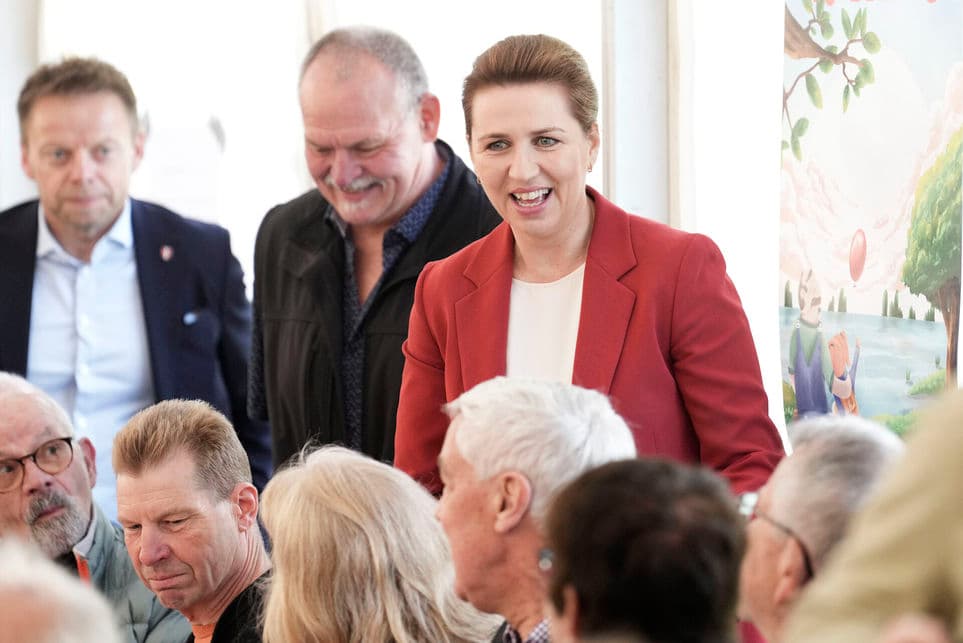 Statsminister Mette Frederiksen (S) var sidste år til et 1. maj-arrangement i Haderslev med bryggeriarbejderen Arne Juhl, der har lagt navn til Arne-pensionen. | Foto: Claus Fisker/Ritzau Scanpix