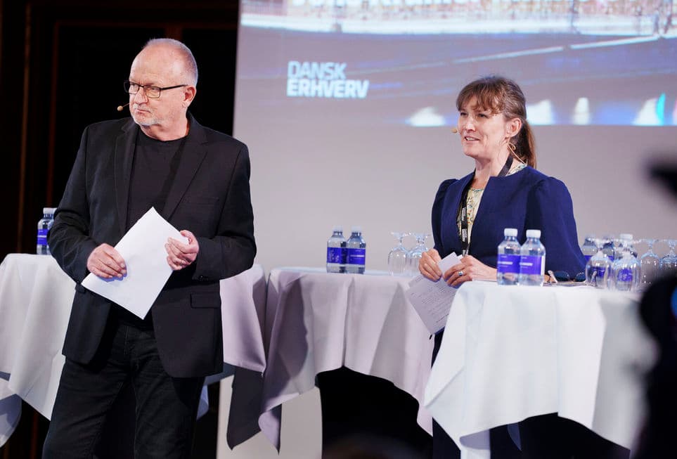 Formændene for Dansk Erhvervs velfærdsråd, Jens Kramer-Mikkelsen og Benedikte Kiær, præsenterer nye anbefalinger. | Foto: Liselotte Sabroe/Ritzau Scanpix