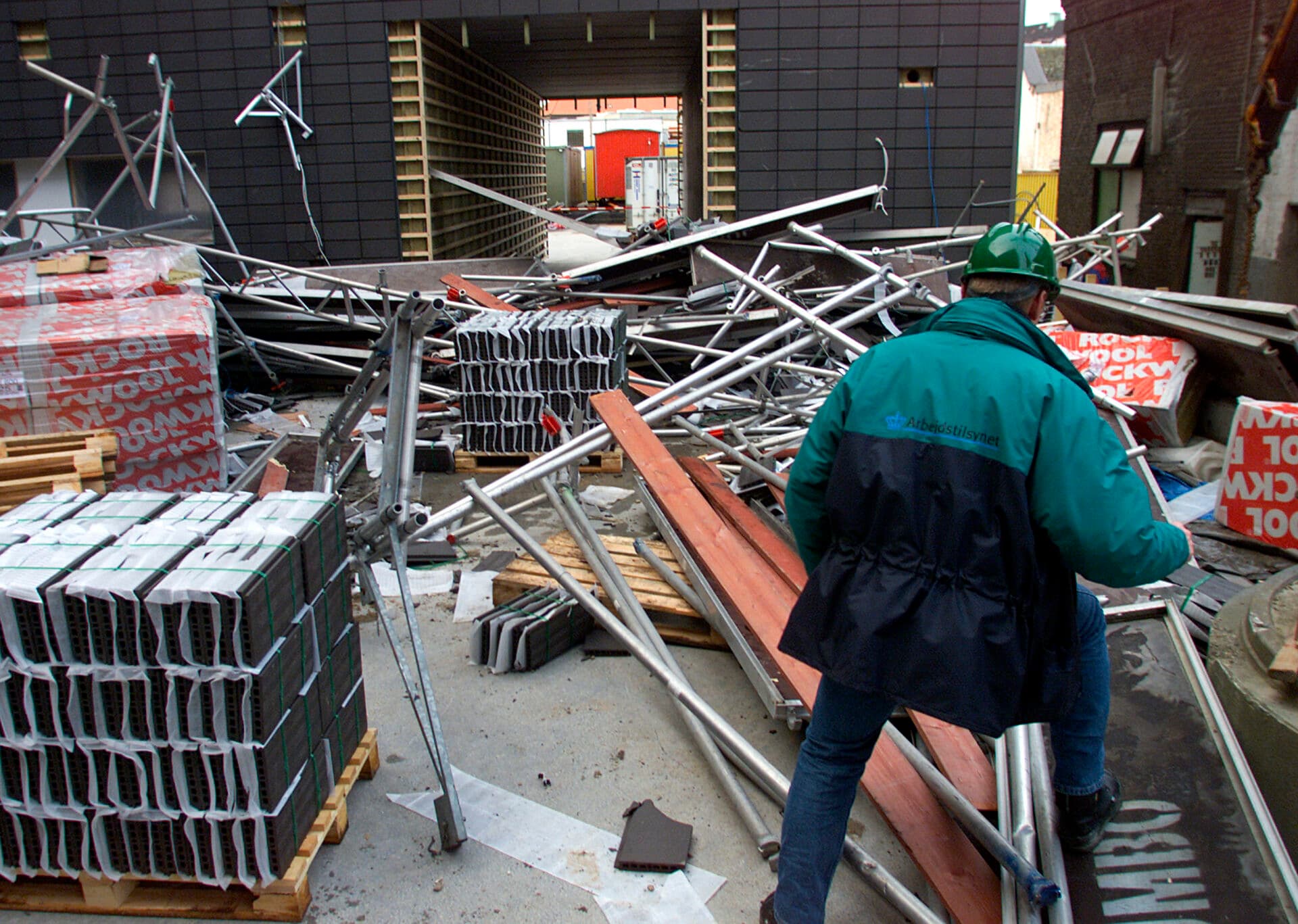 Arkivbillede af en tilsynsførende fra Arbejdstilsynet, der er besøg på en byggeplads, hvor der er sket en arbejdsulykke. | Foto: Palle Hedemann/Ritzau Scanpix