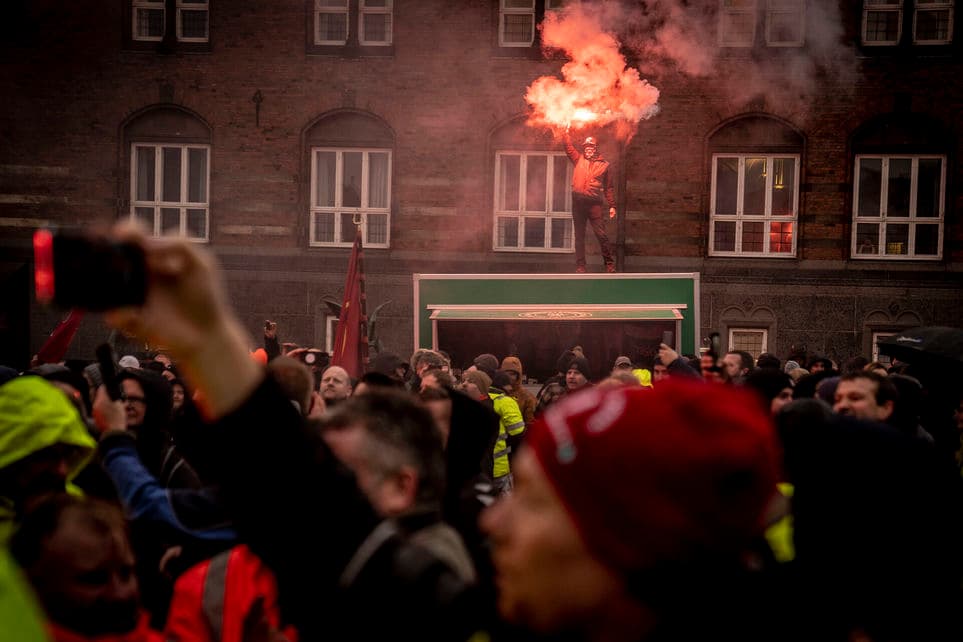Faglige aktivister risikerer at brænde inde med alle de indkøbte romerlys. | Foto: Mads Claus Rasmussen/Ritzau Scanpix