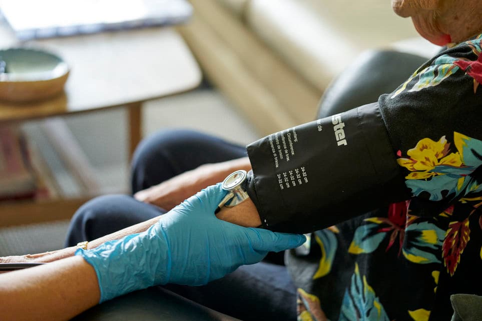 Det bliver mere og mere udbredt at ansætte social- og sundhedsassistenter, der blandt andet kan tage blodprøver, måle EKG og blodtryk og varetage andre sundhedsfaglige opgaver i klinikken, lyder det fra FOA. | Foto: Signe Goldmann/Ritzau Scanpix