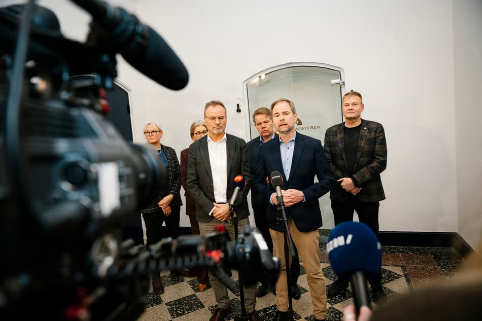 Mandag blev OK25 skudt i gang med et pressemøde i Industriens Hus. Foran bygningen havde fagbevægelsen trodset vejret for at hejse de røde faner. | Foto: Ólafur Steinar Rye Gestsson/Ritzau Scanpix