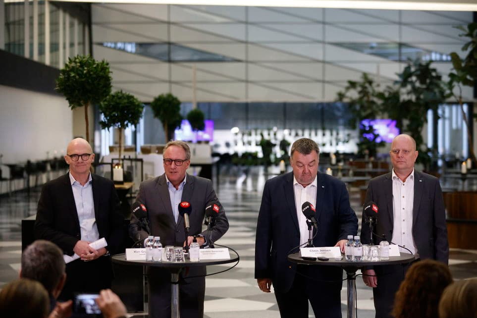 Industriens topforhandlere til pressemøde 6. januar. Fra venstre: Kim Graugaard, Lars Sandahl Sørensen, Claus Jensen og Mads Andersen. | Foto: Olafur Steinar Gestsson/Ritzau Scanpix