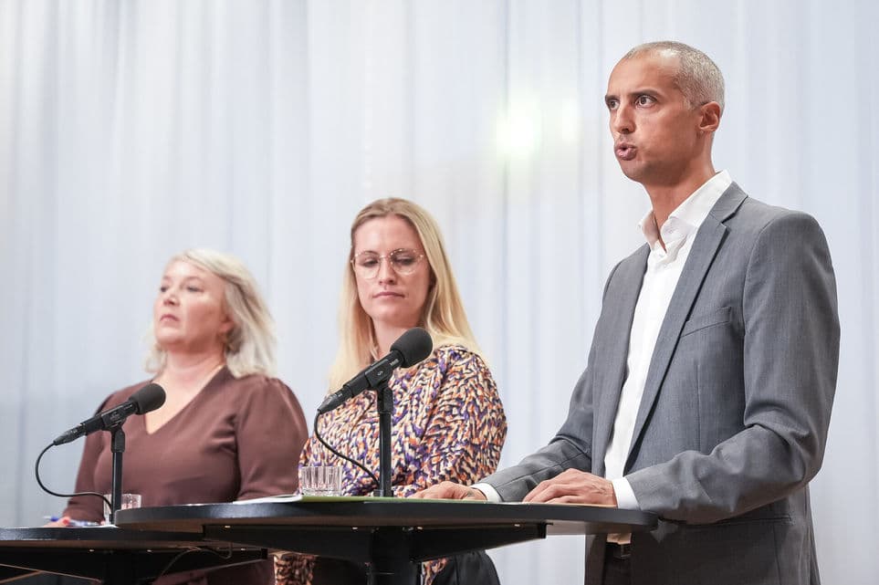Christina Egelund (M), Stephanie Lose (V) og Mattias Tesfaye (S) præsenterede reformudspillet 8. oktober 2024 | Foto: Emil Nicolai Helms/Ritzau Scanpi