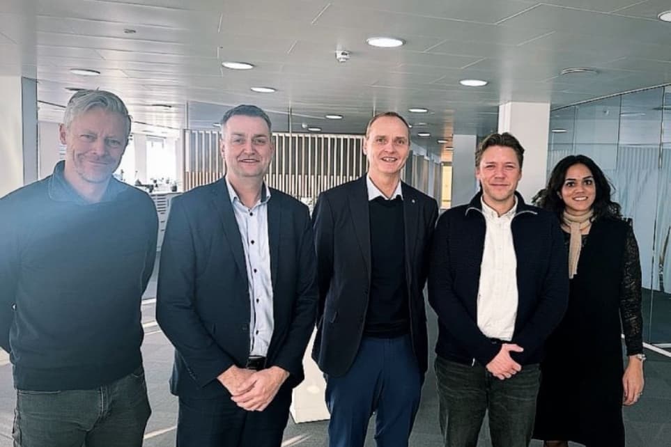 AOF's hovedbestyrelse. Fra venstre: Direktør John Meinert, tidligere næstformand Leif Lahn Jensen, formand Rene Nielsen, nyvalgt næstformand Rasmus Horn Langhoff og vicedirektør Humaira Nasim. | Foto: Privat